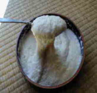| あとは、お好みに合わせて味付けをして下さい。 例えば、 生卵・醤油・刻み海苔・味の素少々 で伸ばして戴いても美味しく召し上がられます。 注意点としては、 「味付けは出来る限り薄く!」 あと、ご飯ですが、麦ご飯のみを炊いて とろろかけにするのはお勧めできません。 人それぞれの好みにもよりますが 米7割:麦3割位が美味しく 召し上がれると思います。 |