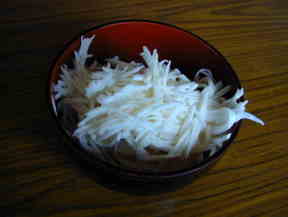 | 包丁などを使って千切りにしても 構いませんが写真のような “千切り機” などを使われると 大変便利です。 |